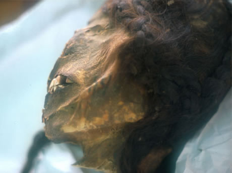 South American Mummies -- Older than Ötzi Mummified evidence of the stitched-in tattoo comes also from the ancient Chimú people of Peru. Excavated burial sites have proved to be almost 1000 years old, and suggest that up to 30% of the population were tattooed. Once again, it appears as if women dominated the art of tattoo. The same plant dye that served for tattooing was also applied like paint to skulls taken in combat by headhunting tribes in the region. The dye was believed to provide protection from evil spirits, and more particularly the spirit of the recently beheaded. (See, "Many Stitches for Life: The Antiquity of Thread and Needle Tattooing" by Lars Krutak.) Not so far away, on a beach in arid northern Chile, an archeological site is home to mummies excavated in 1919. These were people of the Chinchorro culture, hunters and gatherers living from 5000 to 500 BC. In fact, the oldest mummy has been dated at 7,810 years old -- the oldest example of intentionally mummified human remains.