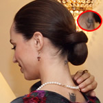 Eliza has a tattoo of a double-headed eagle on her back, like the one in Albania's national flag (her father's homeland) and the word 'Grace' on the back of her neck in memory of her late grandmother. On her hip she has some subtle script that reads "Lead, Kindly Light". It's is a hymn written in 1833 by John Henry Newman. The tune was written by John B. Dykes in 1865.