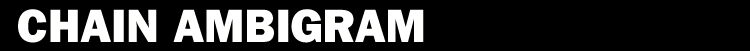 A Chain ambigram is a design where a word (or sometimes words) are interlinked, forming a repeating chain. Letters are usually overlapped meaning that a word will start partway through another word. Sometimes chain ambigrams are presented in the form of a circle.