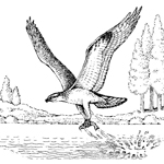 The Osprey, or "sea hawk", also called, "fish hawk", has long proved a puzzle for taxonomists. It has been included as both the largest of the hawks, with a wingspan of nearly six feet, and listed as a separate species alongside hawks and eagles. There are four recognized sub-species, except that they are not genetically distinct. As the name "sea hawk" implies, the osprey's diet is almost exclusively fish (up to 99%) and it is a familiar sight along nearly all the world's coasts. The osprey is the most widespread of all the raptors, being found on every continent, although it is only an over-wintering migrant to South America.