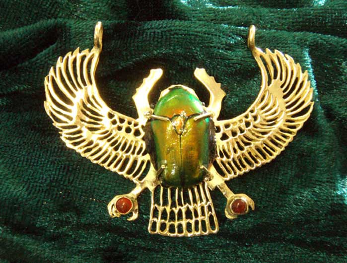During the time of the Egyptians, stone-carved scarabs were used as magical amulets and protective talismans to aide its wearer with the power of "eternal renewal of life." Scarabs were also employed as talismans and royal seals. The winged scarab was used in Egyptian funeral rites. When the long linen strips covering mummies have been unwrapped, many small charms and amulets have been uncovered. Foremost among them have been sacred Scarab beetles.
